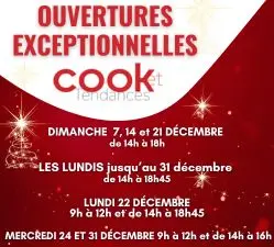 Pour vous permettre de préparer la fin d’année, nous avons le plaisir de vous accueillir les jours suivants :